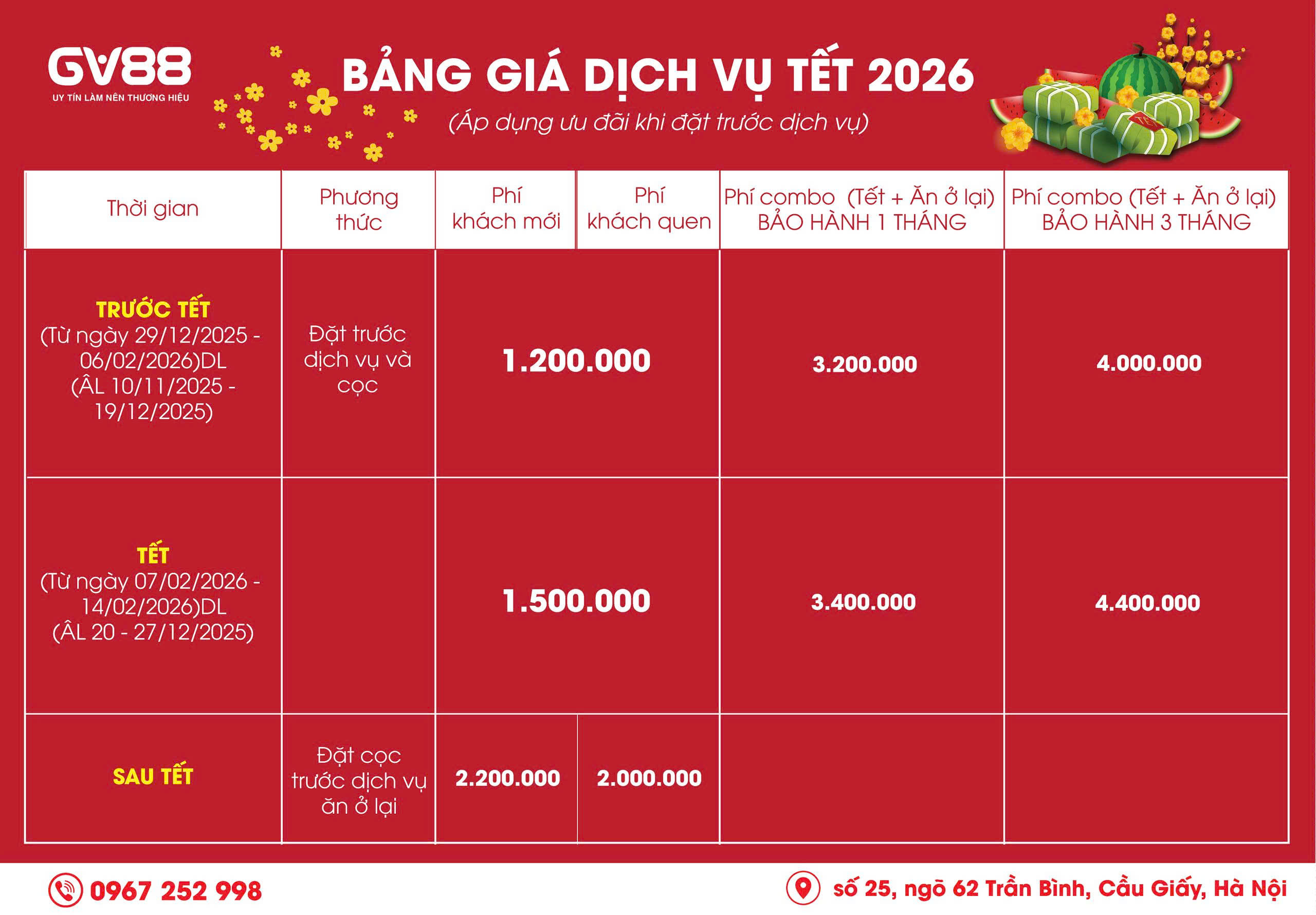 Đặc biệt, GV88 mở dịch vụ Giúp Việc Tết 2026 với khuyến mãi